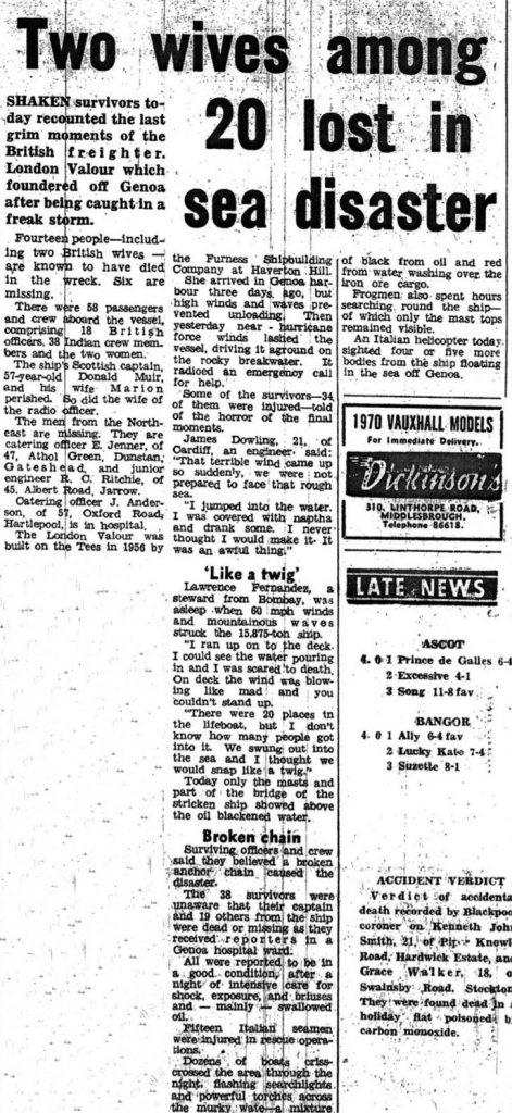 Jack was the 3rd Eng on the London Valour when it floundered off Genoa in 1970.